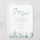 An elegant minimal Wedding Save The Date Invitation card featuring a gorgeous watercolor eucalyptus leaf design with a stylish script font. Customize with your details to inform your guests of your special day. Please browse the Minimal Eucalyptus Leaf Green Gold Wedding Suite for matching items.