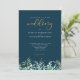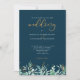 Minimal Eucalyptus Leaf Gold Navy Wedding Invitation