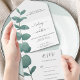 It features an original watercolor eucalyptus sprig in shades of green with elegant calligraphy script.