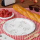 Minimal female face line pattern paper plate featuring elegant profile outlines in fine gold lines on a clean white background. Sophisticated and modern with a simple feminine aesthetic, this seamless design is ideal for beauty lovers, minimalist art fans, fashion enthusiasts, and elegant contemporary style.