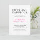 Minimal Fifty and Fabulous pink and black modern 50th birthday invitation that you can personalize and send out for your fiftieth birthday party celebration. The words "Fifty and Fabulous" are set using trending font typography. The pink and black text colors can be changed using the edit menu.