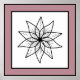 Minimalist black-and-white floral mandala with thin black outlines within a purple border, just in time for spring and summer.
