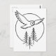 Minimal Flying Owl Over Pines – Forest Line Art Il Postcard