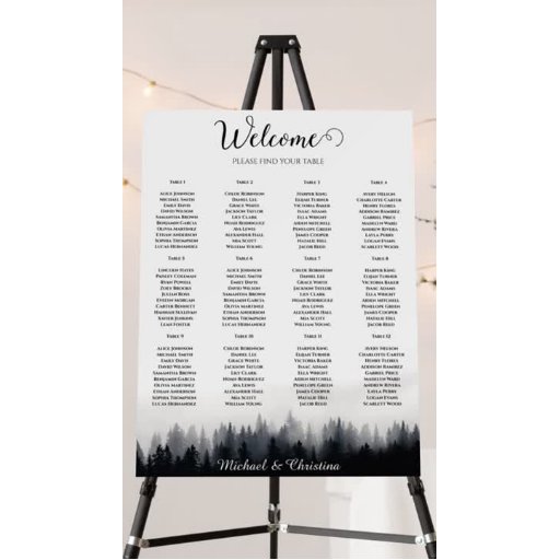 Minimal foggy spruce forest nature wedding. Landscape photograph of fog trapped in between the spruce forest making its way through the branches. Dark black and white. Pesonalizable names and everything you need you can customize.