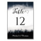 Minimal foggy spruce forest nature wedding table number