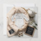 Announce your exciting news with a minimalist touch! This gender-neutral pregnancy announcement features an adorable white sheep plushie and a simple basket adorned with a baby bodysuit. Perfect for those seeking a cute, subtle way to share their journey, this design is timeless and sweet.