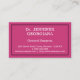 This plain, minimal, and customizable business card design features a magenta background, and a double-line black border. It could be used by a professional such as a general surgeon, psychiatrist, endocrinologist or rheumatologist. The name, profession and contact details can be personalized.