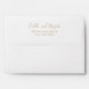 Modern faux gold wedding envelope featuring a simple and minimal design with your names in an elegant script and your return address in a contemporary sans serif font. A minimalist design that goes well with any style of wedding invitation suite.