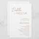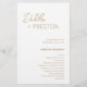 Modern faux gold wedding program featuring a simple and minimal design with the bride's name in an elegant script and the groom's name in a contemporary sans serif font. Below in the lower right corner are your event details and order of ceremony in a minimalist layout. The back has your wedding party and thank you message.
