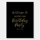 Welcome your guests to a special celebration day with this modern gold birthday welcome sign. This sign features modern typography" Welcome to Birthday Party" with custom text. You can customize the name and the date. Matching invitations and party supplies are available at my shop BaraBomDesign.