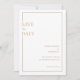 Islamic Muslim Save The Date card announcement template that can be used to announce the couple's marriage or engagement ceremony. Basic white ivory color card with a classic, clean gold script font written on top. Minimal. Modern. There is a delicate golden frame with the words "Save The Date" written on the left side and the names of the bride and groom written in capital letters, date and rest of the information written on the right side. You can customize all the information and edit the font type, style and size with the Design Tool. Wedding stationary. Her Line For Design Studio by Ayesha.