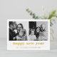 Contemporary and minimal bold graphic typography happy new year holiday photo card in real foil.