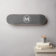 A minimalist monogram design with gray and white monogram emblem with classic block typography initial on a simple gray background.