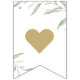 Modern chic watercolor botanical foliage greenery, cute gold color heart shape, simple and elegant, great Miss to Mrs. bride to be bunting flags for modern rustic bridal shower, botanical garden wedding in spring and summer.