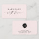 Minimal Handmade with Love Script Custom Logo Business Card | Pink. Customise your name and colors to make the perfect card for your small business needs.