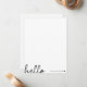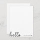 A minimal note card design with a stylish handwritten script large typograhy quote "hello" paired with your own name and a simple black heart. Designed in a modern mininalist style in clean simple black and white. The perfect personalized gift or accessory for any time of year!