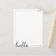 A minimal postcard design with a stylish handwritten script large typograhy quote "hello" paired with your own name and a simple black heart. Designed in a modern mininalist style in clean simple black and white. The perfect personalized gift or accessory for any time of year!