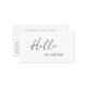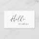 Modern black and white typographic business card featuring a simple and minimal design with "hello" in an elegant script typography along with your personalized message. The back has your contact info and optional QR Code. You may remove the QR Code and change the colors of the fonts and background in the design editing tool.