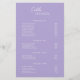 Modern and professional purple / lavender price list featuring a simple and minimal design with your name in an elegant script and contemporary sans serif font. The template includes several divided sections for your services in a minimalist layout. The back has your contact info and optional QR code. If you prefer, the QR code may be removed in the design editing tool.