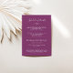 This minimal leaf berry weekend schedule of events enclosure card is perfect for a boho wedding. The design features a simple greenery leaf silhouette in a romantic summer violet color with minimalist bohemian garden style.