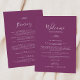 These minimal leaf berry welcome letter & itinerary cards are perfect for a boho wedding. The design features a simple greenery leaf silhouette in a romantic summer violet color with minimalist bohemian garden style. The front of the card features a welcome letter and the back of the card features the wedding itinerary. These notes are perfect for destination weddings and hotel guest welcome bags.