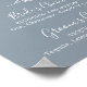 This minimal leaf blue and white signature drinks poster sign is perfect for an elegant wedding. The design features a simple greenery silhouette in white on a dusty blue background with classic minimalist style.