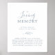 This minimal leaf blue in loving memory memorial sign is perfect for an elegant wedding. The design features a simple greenery silhouette in light slate blue with classic minimalist style.