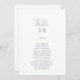 These minimal leaf blue table number seating chart cards are perfect for an elegant wedding. The design features a simple greenery silhouette in light slate blue with classic minimalist style. The card prints on the front and back (double-sided).