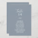These minimal leaf blue and white hanging seating chart cards are perfect for an elegant wedding. The design features a simple greenery silhouette in white on a dusty blue background with classic minimalist style. The card prints on the front and back (double-sided).