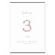 This minimal leaf blush pink table number is perfect for an elegant wedding. The design features a simple greenery silhouette in light blush pink with classic minimalist style. The card prints on the front and back (double-sided). Items are printed exactly as they appear on your screen when you add to cart, so personalize and add each table number that you need to your cart individually.
