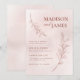 Minimal Leaf Boho Pink Elegant Wedding Invitation