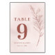 Minimal Leaf Boho Pink Elegant Wedding Table Number