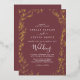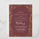 This minimal leaf burgundy and gold foil wedding invitation card is perfect for a boho wedding. The bohemian design features a simple greenery silhouette in a dark red wine color with classic minimalist boho style with luxurious pressed foil accents.