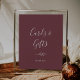 This minimal leaf burgundy cards and gifts poster sign is perfect for a boho wedding or bridal shower. The bohemian design features a simple greenery silhouette in a dark red wine color with classic minimalist boho style. The line of text at the bottom of the sign can be personalized with the date, the names of the bride and groom, or a short message like "Thank you". This sign can be used for a wedding or any event or party.