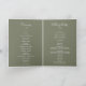 This minimal leaf dark green folded wedding program is perfect for a boho wedding. The design features a simple greenery leaf silhouette in olive green with minimalist mountain bohemian style.