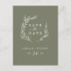 This minimal leaf dark green save the date postcard is perfect for a boho wedding. The design features a simple greenery leaf silhouette in olive green with minimalist mountain bohemian style.