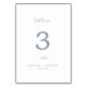 This minimal leaf dusty blue table number is perfect for an elegant wedding. The design features a simple greenery silhouette in light slate blue with classic minimalist style. The card prints on the front and back (double-sided). Items are printed exactly as they appear on your screen when you add to cart, so personalize and add each table number that you need to your cart individually.