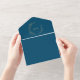 This minimal leaf gold and blue wedding all in one invitation is perfect for an elegant wedding. The design features a simple greenery silhouette in faux gold foil with classic minimalist style on a blue background. Hand write your guest addresses on the back of the folded invitation, or purchase the coordinating guest address label stickers (sold separately).
