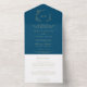 Minimal Leaf | Gold and Blue Wedding All In One Invitation