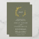 This minimal leaf gold foil dark green monogram wedding invitation is perfect for a boho wedding. The design features a simple greenery leaf silhouette in luxurious pressed gold foil on an olive green background with minimalist mountain bohemian style. Personalize with the first initials of the bride and groom.