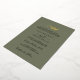 Perfect for a boho yet traditional wedding, this elegant invitation showcases a simple greenery leaf silhouette in luxurious pressed gold foil. Set against a rich olive green background, its minimalist mountain-inspired design blends timeless sophistication with natural charm for a beautifully refined celebration.
