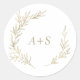 These minimal leaf gold monogram envelope seals are perfect for an elegant wedding. The design features a simple greenery silhouette in faux gold foil with classic minimalist style. Personalize the label with the names of the bride and groom.