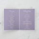 This minimal leaf lavender folded wedding program is perfect for a boho wedding. The design features a simple greenery leaf silhouette in pastel lilac purple with minimalist bohemian garden style.