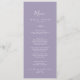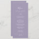 This minimal leaf lavender wedding dinner menu card is perfect for a boho wedding. The design features a simple greenery leaf silhouette in pastel lilac purple with minimalist bohemian garden style. This menu can be used for a wedding reception, rehearsal dinner, or any event.