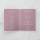 This minimal leaf mauve folded wedding program is perfect for a boho wedding. The design features a simple greenery leaf silhouette in a romantic purple pink color with minimalist bohemian garden style.