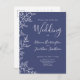 Minimal Leaf Navy Blue Wedding Invitation Postcard