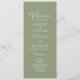 This minimal leaf sage green wedding program is perfect for a boho wedding. The design features a simple greenery leaf silhouette in a dusty green color with minimalist mountain boho style. Include the name of the couple, the wedding date and location, thank you message, order of service, wedding party and an optional "in loving memory" memorial.