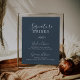 This minimal leaf slate blue signature drinks poster sign is perfect for an elegant wedding. The design features a simple greenery silhouette in a dark gray blue with classic minimalist style.