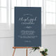 This minimal leaf slate blue unplugged ceremony foam board sign is perfect for an elegant wedding. The design features a simple greenery silhouette in a dark gray blue with classic minimalist style.