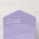 Modern lavender / purple QR Code all in one wedding invitation featuring a simple and minimal design with the bride's name in an elegant script and the groom's name in a contemporary sans serif font. Below in the lower right corner are your event details in a minimalist layout. If you prefer, the QR code may be removed in the design editing tool.